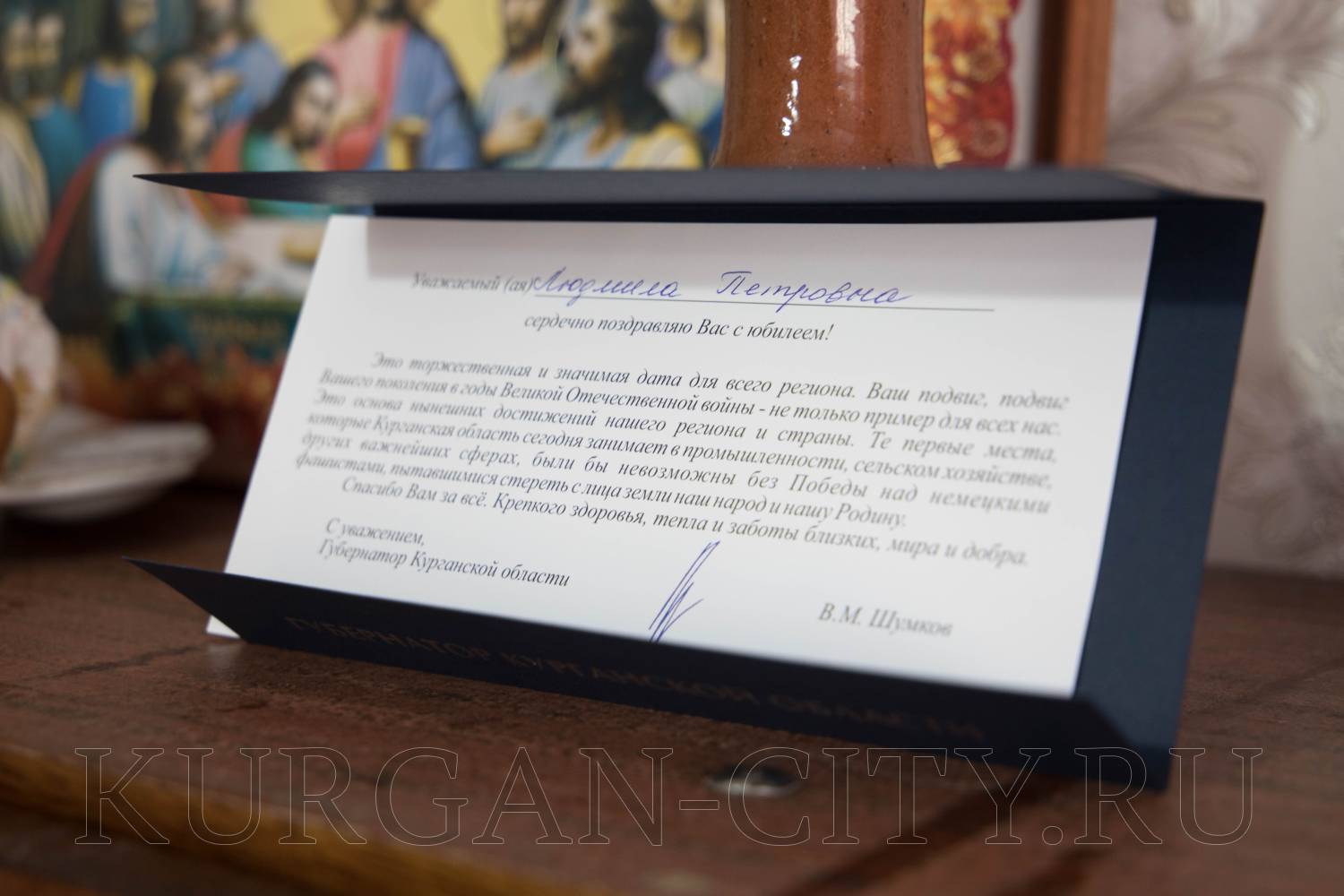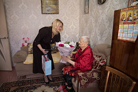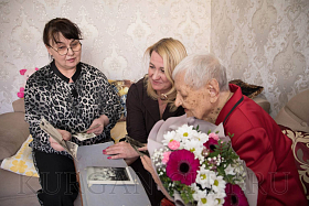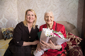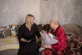 Ветерану труда из Кургана, отличнику здравоохранения Людмиле Петровне Рогалевой исполняется 100 лет. Со знаменательным юбилеем Людмилу Петровну от имени губернатора Курганской области Вадима Шумкова, главы города Кургана Антона Науменко и от себя лично поздравила заместитель главы города Кургана, директор департамента социальной политики Юлия Гурьянова.