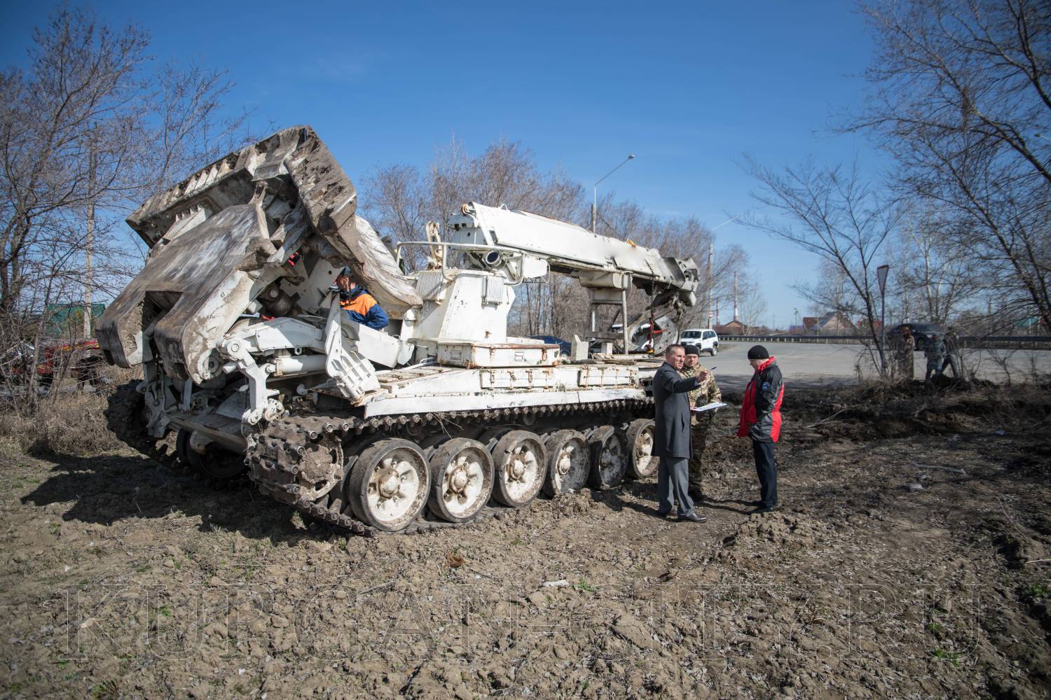 Заместитель директора МБУ «КурганЛес» Талгат Маметов добавил, что ИМР хорошо справляется с работой в труднодоступных местах, где есть заболоченность и где колёсная техника не может провести опашку. «Инженерная машина разграждения за один проход создает минерализованную полосу шириной не менее 6 метров. Масса машины составляют 47 тонн, в длину она 10 метров, в ширину - 4,5 метра. Мощность двигателя - 800 лошадиных сил. На ней установлено дополнительное навесное оборудование, как отвал, который работает прямо, клином и боком. Управляет машиной специально обученный экипаж в количестве двух человек», - сказал Талгат Сергович.