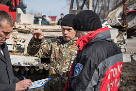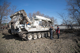 - Основное преимущество данной машины — это её ходовая база, основанная на базе танка Т-72, что позволяет ей проводить работы в труднодоступных участках местности. В случае возникновения какой-либо угрозы и ландшафтного пожара данная машина может быть оперативно переброшена на этот опасный участок для создания минерализованных полос, - пояснил Александр Витальевич.