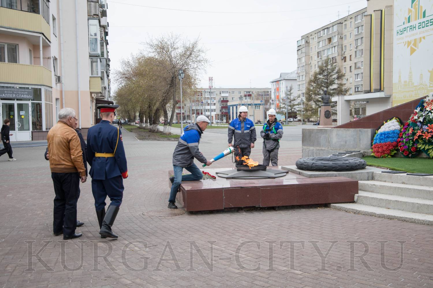 Напомним, Вечный огонь у обелиска Победы на Аллее Славы был зажжен в Кургане в 1970-м году, в год 25-летия Великой Победы. Право зажечь символ Победы было предоставлено фронтовику, первому секретарю Курганского областного комитета КПСС Филиппу Князеву. Факел с огнем ему передал Герой Советского Союза, полковник в отставке Федот Елисеев.