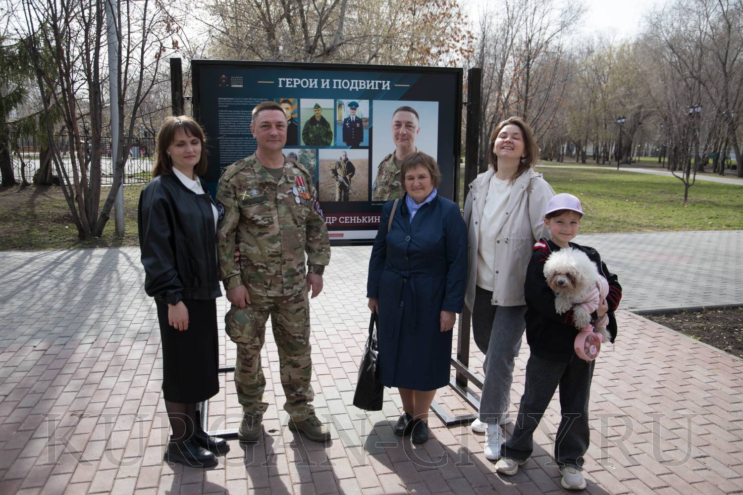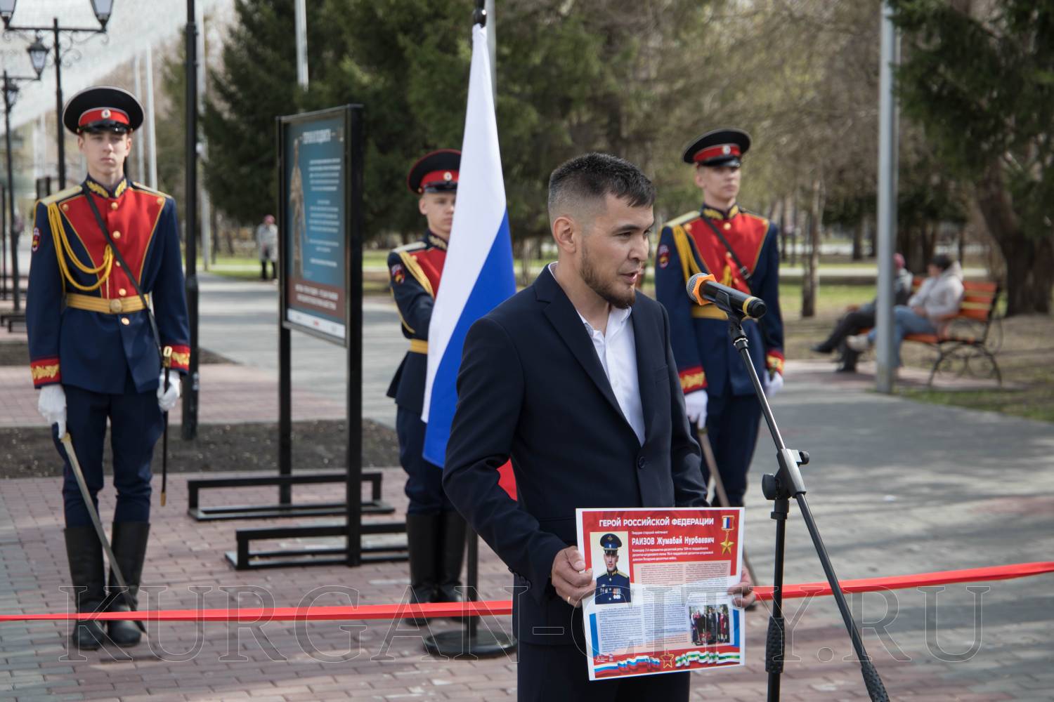 В Городском саду Кургана сегодня состоялось торжественное открытие выставки «Герои и подвиги» в рамках историко-просветительского проекта, который реализуется Российским военно-историческим обществом с 2022 года. Проект посвящен участникам специальной военной операции – современным защитникам Отечества, которые продолжают славные традиции героев Великой Отечественной войны. На мероприятие собрались ветераны специальной военной операции, родители и родные Героев СВО, кадеты и школьники, студенты, представители регионального общественного движения «Волонтеры Победы».