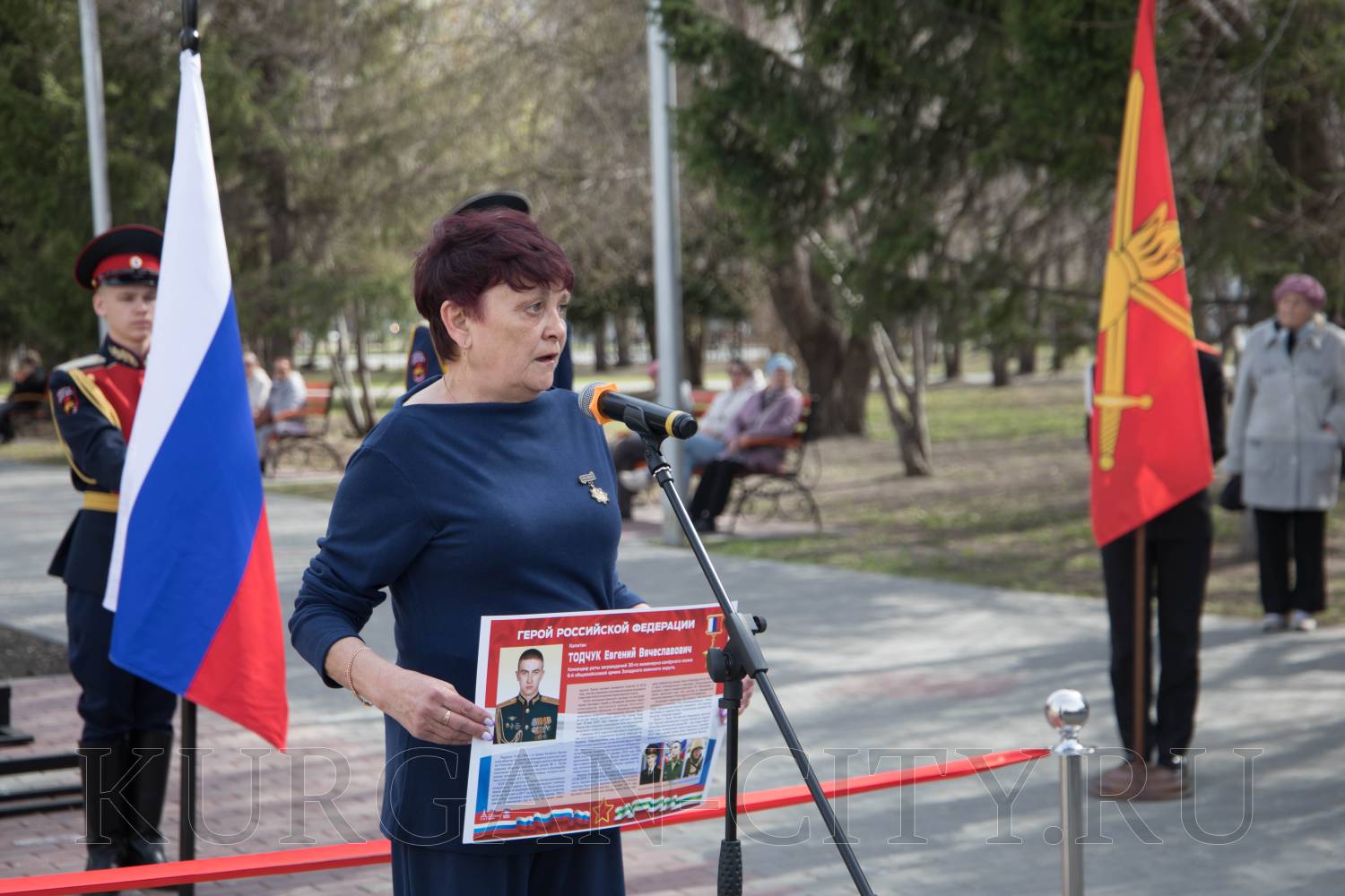 Во время мероприятия отмечалось, что Катайская земля дала Родине 7 Героев Советского Союза. Это люди, которые воевали против немецко-фашистских захватчиков в годы Великой Отечественной войны. Не прервалась связь времен и сегодня. Среди участников экспозиции – Герой Российской Федерации из Катайска Евгений Тодчук. На открытие выставки приехала его мама Лилия Тодчук. Лилия Александровна рассказала, что Евгений после пятого класса поступил в Екатеринбургское суворовское военное училище. Затем было Тюменское высшее командное училище, которое Евгений окончил с отличием. Служил в Санкт-Петербурге, откуда и ушел на СВО. «У Евгения остались жена и двое детей. Сегодняшнее открытие выставки – очень волнительно для меня, благодарю администрацию области за приглашение. Горжусь нашими ребятами, которые защищают нашу Родины», - добавила Лилия Тодчук.