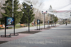 Добавим, разрабатывал макет выставки, в частности подготовил шесть стендов, посвященных курганским