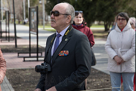 представителям СВО, ветеран военной службы, полковник в отставке Сергей Суханов. Он отметил, что среди героев СВО нашего региона – два Героя Российской Федерации, четверо – уроженцы города Кургана, кавалеры орденов Мужества, медалей «За отвагу» и других наград. «Это ветераны СВО, которые живы, мы с ними общались, постарался их жизненный и боевой путь изложить так, чтобы гости города и курганцы знали, что эти ребята – настоящие Герои», - поделился Сергей Петрович. Он отметил, что главная цель выставки - сохранить память о тех людях, которые на передовой защищают нашу страну.