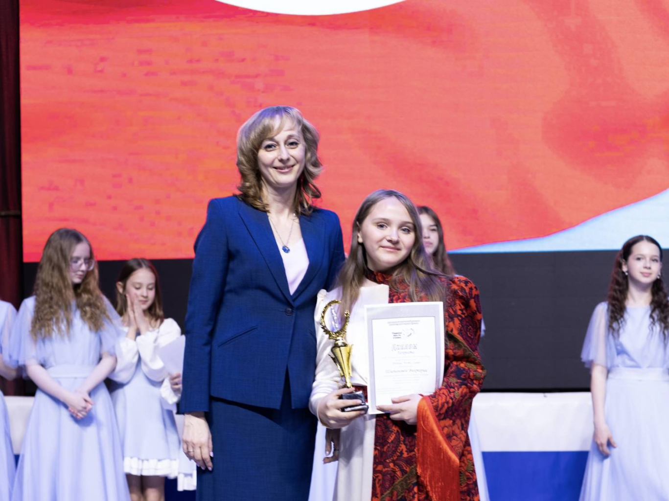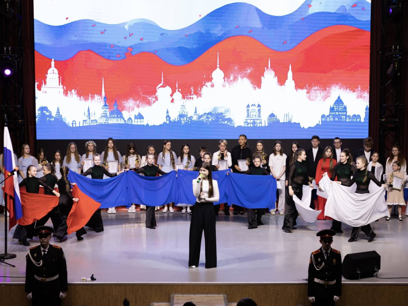 Талантливых ребят и взрослых приветствовала заместитель директора Департамента социальной политики, начальник управления образования Юлия Стефаник. Она поблагодарила каждого за искренность исполнения и за то, что через искусство участники делятся любовью к Родине. «Ваши выступления подарили всем незабываемые эмоции, чувство гордости за страну, напомнили нам о силе единства. Желаю всем участникам вдохновения, удачи и новых творческих побед», — отметила Юлия Викторовна.