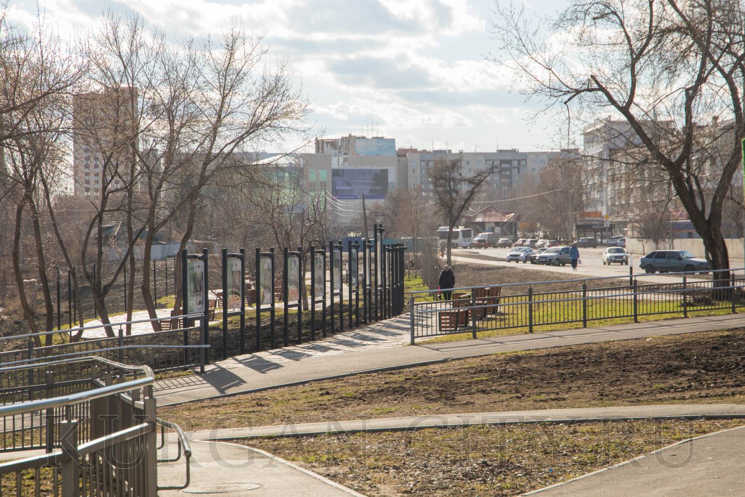 Уточним, что ранее на участке перед ЦПКиО расширили дорогу, сделали парковки для транспорта, обустроили пешеходные дорожки, установили скамейки и урны, высадили 20 пирамидальных тополей. На благоустроенной территории разместили стенды галереи почета «Дети — гордость города» с 15-ю фотопортретами юных курганцев.